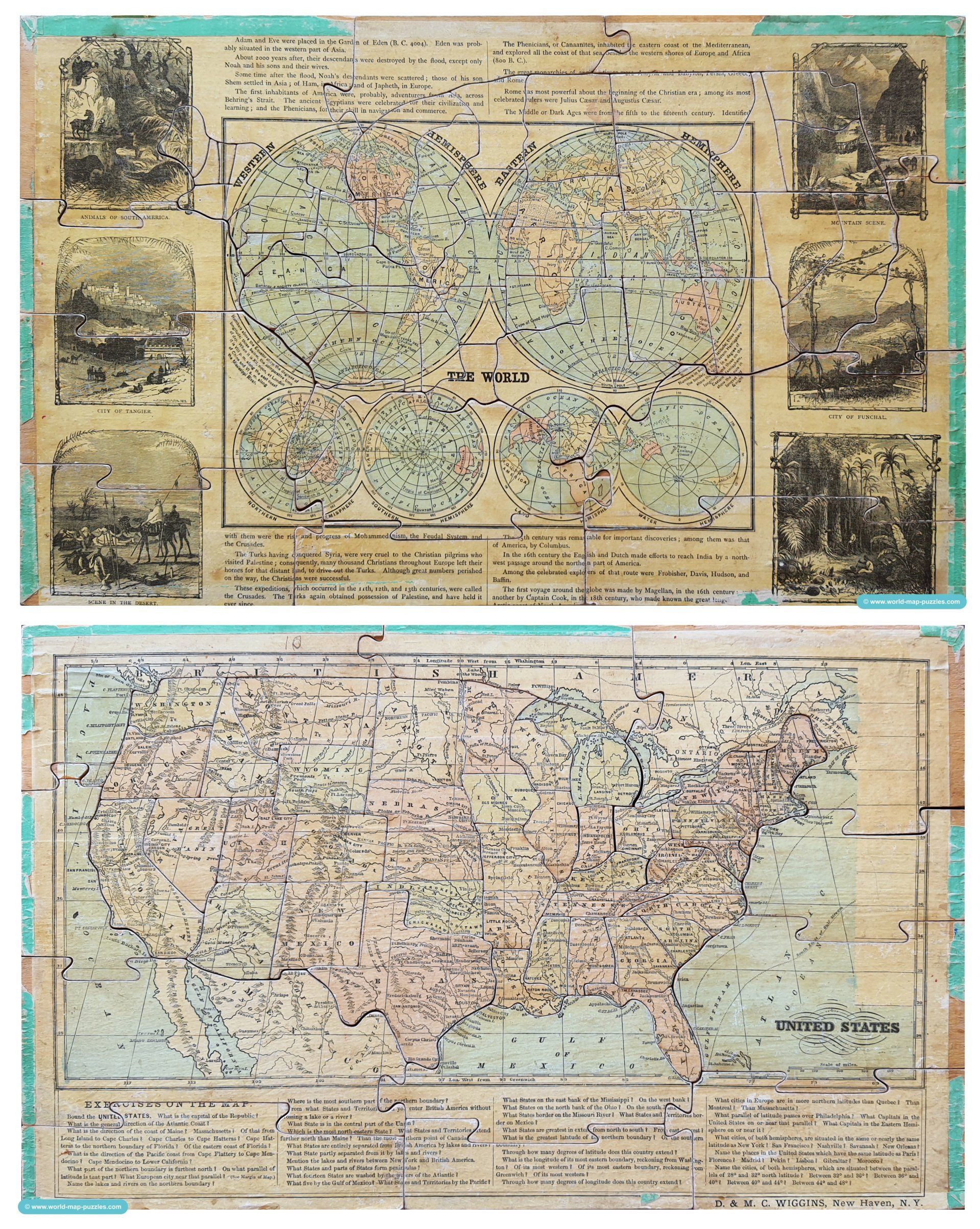 The Geographical Patience Game by the German manufacturer Otto Maier from Ravensburg was the first puzzle in the history of the Ravensburger Puzzle Company. Publishing in 1891, you can find this first puzzle game in different varieties. In my collection I have three of them with different boxes, sizes and maps. And not ONE set is complete... but I'm really happy that I have these varities of the oldest puzzle of Ravensburer history!