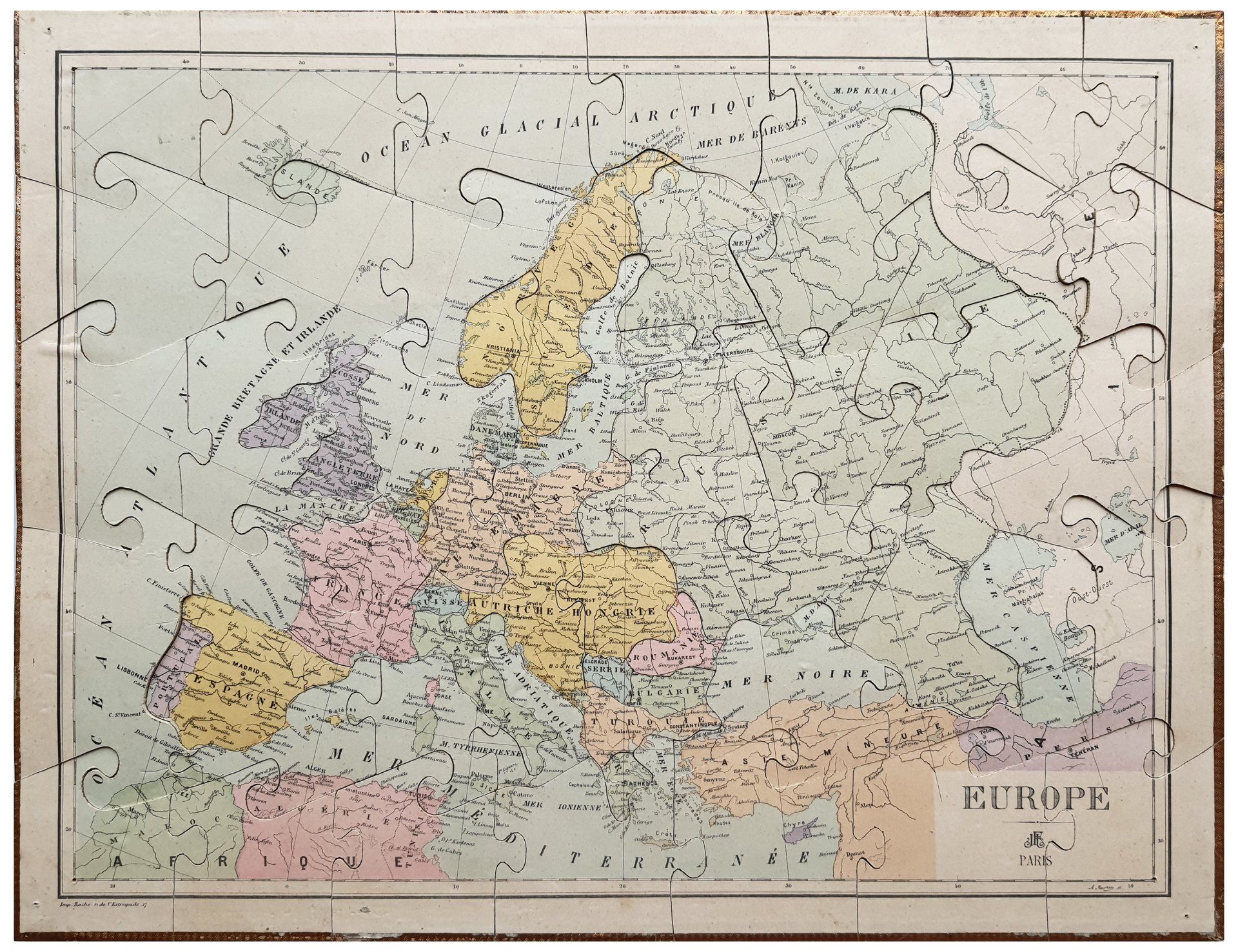 Some of the most popular French toy manufacturer (Mauclair-Dacier (MD), Simonin-Cuny (S.C.), Wogue & Lévy (AWGL), Paul Perret and later in 1905 Delhaye Frères) band together to found the new company “Jeux & Jouets Français” – French Games & Toys. The company exists till 1931.