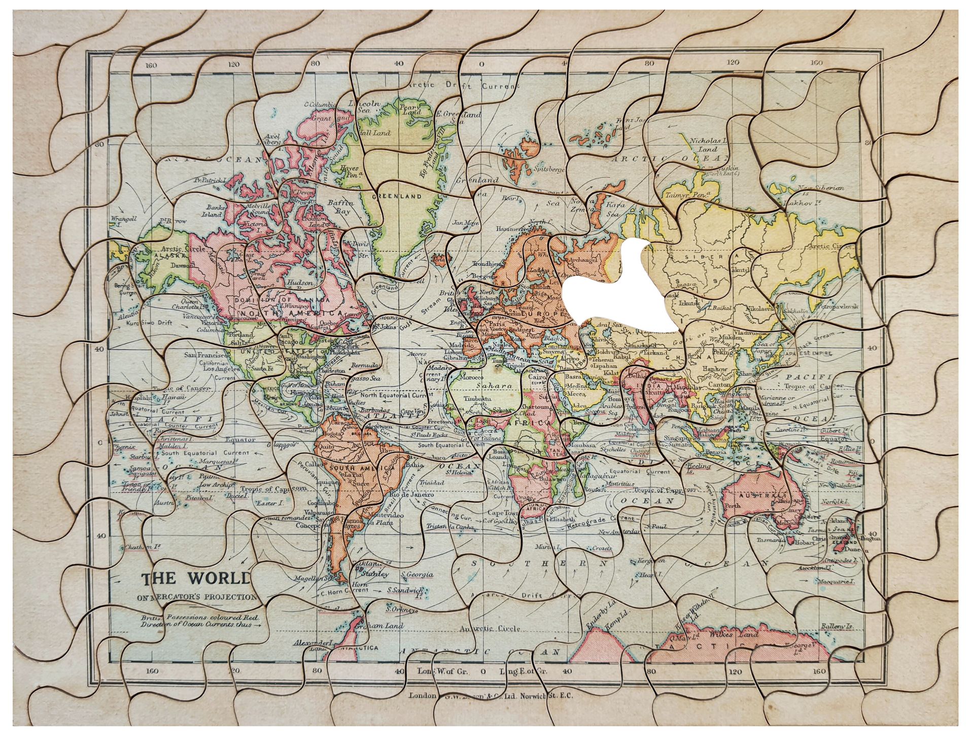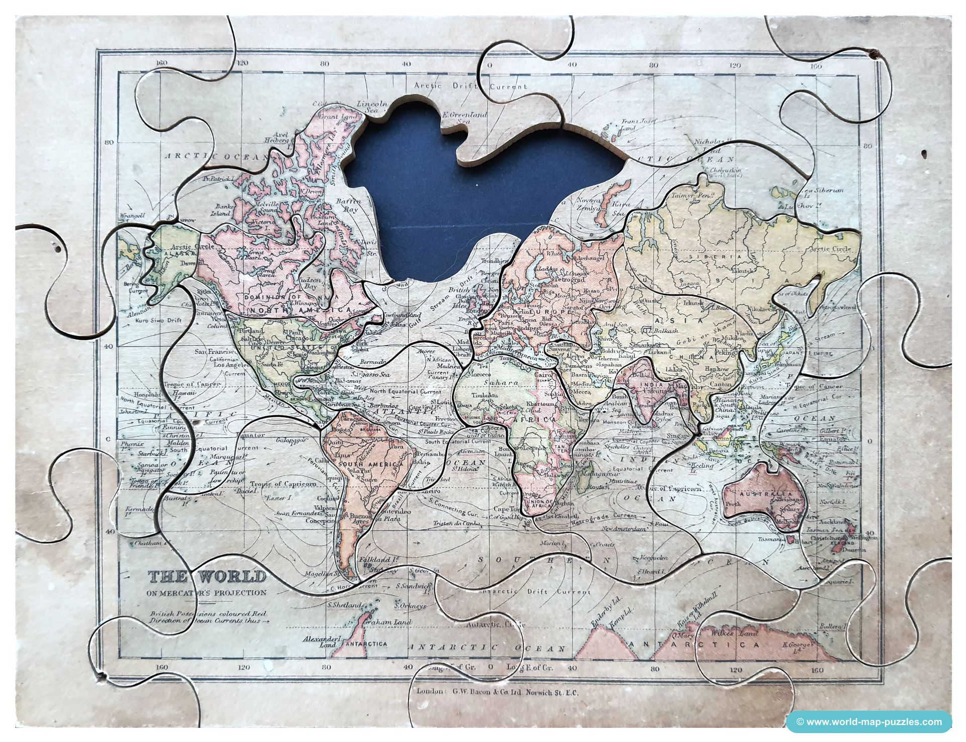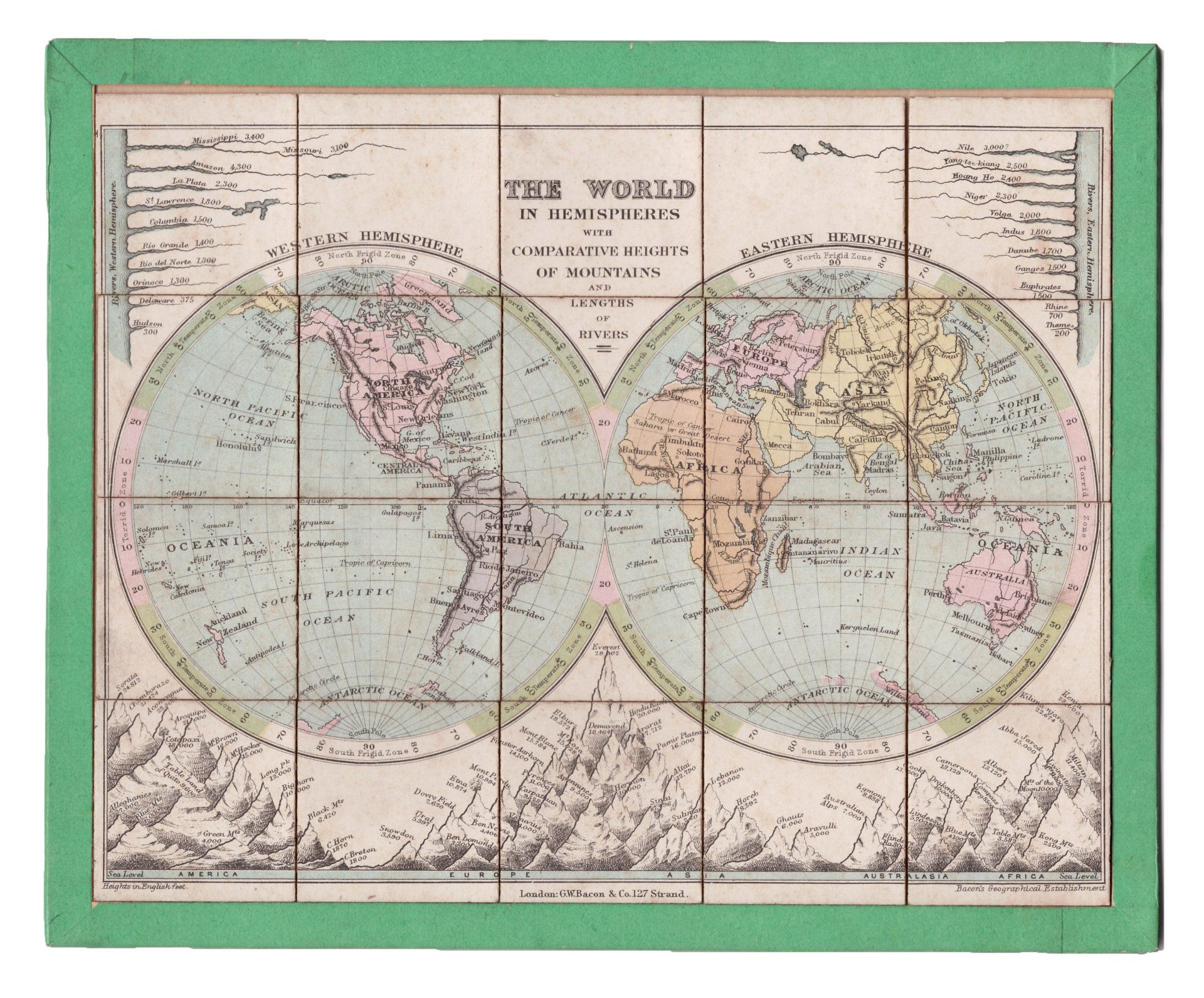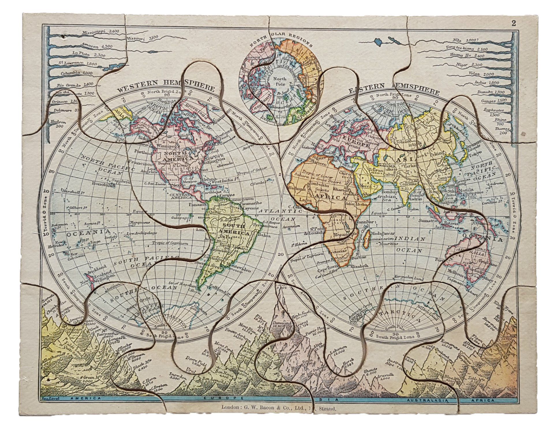 mh-0585 Superior Dissected Maps - The World by W. Peacock, c. 1890s-1900s
